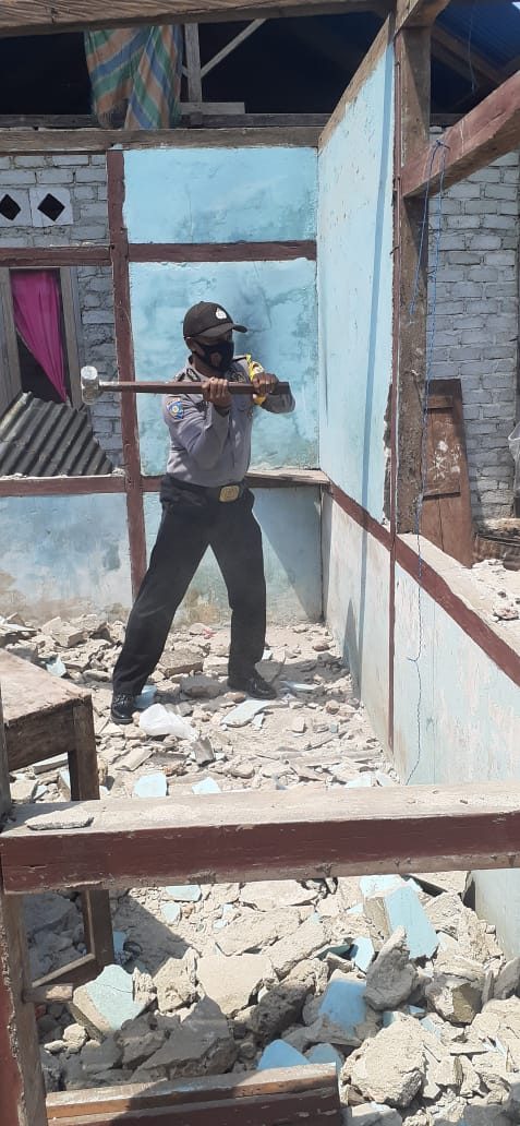Tribratanews.polrestanimbar.com – Polda Maluku, Polres Maluku Tenggara Barat, Selasa 17 November 2020, pukul 11.00 wit, bertempat di Desa Weratan RT.002/RW.002 Kecamatan Wermaktian Kabupaten Kepulauan Tanimbar Bhabinkamtibmas Desa Weratan Bripka Romanus Malirmasele melaksanakan giat bakti bersama warga untuk bersama-sama melakukan pembongkaran terhadap konstruksi bangunan rumah yang sudah lama guna proses pembangunan konstruksi bangunan yang baru milik Bapak Aleksandro Keliwulan.