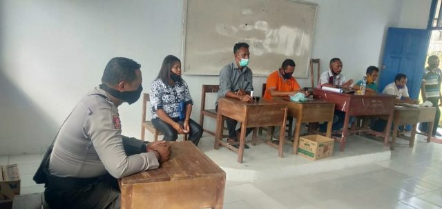 Tribratanews.polrestanimbar.com – Polda Maluku, Polres Maluku Tenggara Barat, Sabtu 27 Juni 2020, pukul 14.00 wit, bertempat di Desa Wermatang Kecamatan Wermaktian Kabupaten Kepulauan Tanimbar Bhabinkamtibmas Desa Wermatang Bripka K. Fenanlampir melaksanakan giat Pengamanan terkait Penjaringan Bakal calon Kepala Desa Wermatang dari 2 ( dua ) Soa besar yaitu, Soa Rumked dan Soa Eblan.