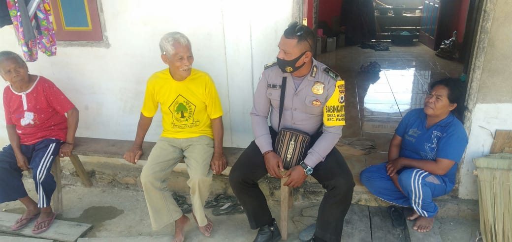 Bhabinkamtibmas Wermatang DDS Keluarga Bapak Siprit Yakitduan dan Sampaikan Ops Yustisi Protokol Kesehatan Covid-19