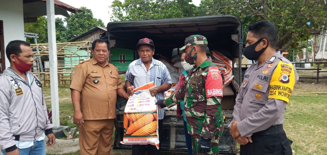 Giat penyaluran Bansos berupa bibit benih jagung Hibrida sebanyak 80 Kg diberikan secara simbolis kepada Ketua Kelompok Tani Bidang Tanaman Jagung yakni Bapak Yosep Torimtubun yang kemudian akan disalurkan oleh Ketua Kelompok Tani kepada anggota kelompok sebanyak 20 orang warga Tani Desa Wowonda.