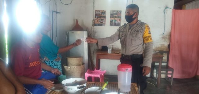Bhabinkamtibmas memberikan cara penerapan protokol kesehatan pencegahan penyebaran virus corona (Covid-19) antara lain :