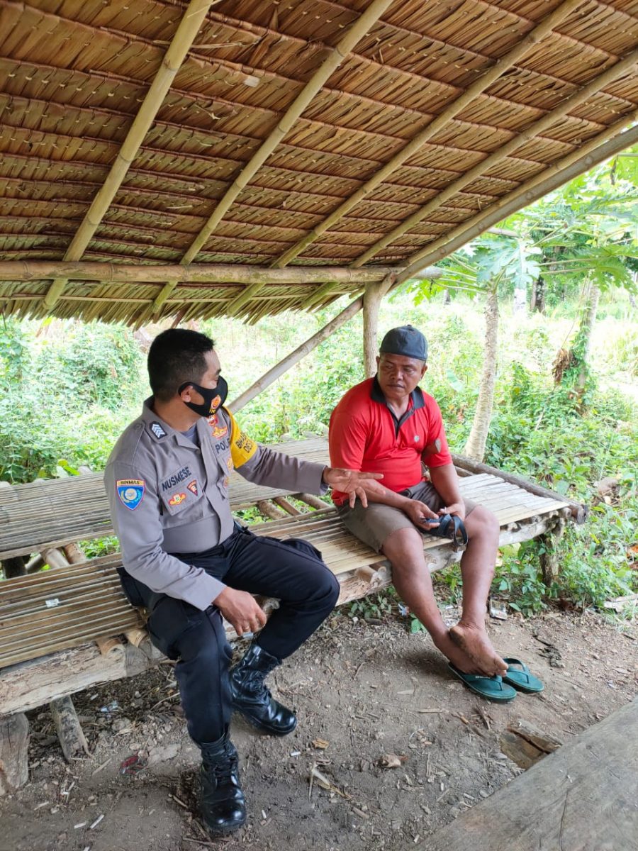 Ketika melaksanakan giat Patroli Roda Dua itu Bhabinkamtibmas menemukan ada beberapa warga yang masih belum mematuhi anjuran protokol kesehatan yakni tidak memakai masker ketika beraktifitas diluar rumah seperti berkebun.