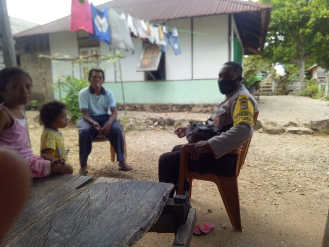 Bhabinkamtibmas juga menyampaikan dan menjelaskan tentang pelaksanaan New Normal di Kabupaten ini agar kita tidak meremehkan Pandemi Covid-19 ini, serta mengarahkan untuk bercocok tanam Pangan Lokal dalam mendukung Ketersediaan Stok Pangan.