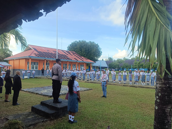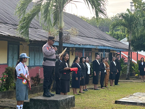 Tribratanews.polrestanimbar.com – Polda Maluku, Kepolisian Resor Kepulauan Tanimbar, Kapolsek Tanimbar Utara, Iptu EVERARDUS FASSE, bertindak sebagai pembina upacara dalam upacara bendera hari Senin yang dirangkaikan dengan pembukaan Ujian Sekolah (US) Tahun Pelajaran 2025/2026 di SMA Cor Jesus Larat, Kecamatan Tanimbar Utara.