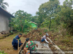 Bangun jalan rabat, Bhabinkamtibmas Lermatang hadir lakukan gotong royong bersama Warga