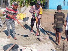 Ringankan pekerjaan Warga, Bhabinkamtibmas Romnus libatkan diri dalam gotong royong