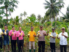 Kapolsek Kormomolin hadir bersama Forkopimcam dan Masyarakat gelar panen Jagung