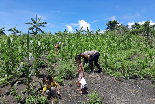 Bersinergi dengan Babinsa, Bhabinkamtibmas Matakus kunjungi Petani Jagung