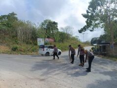 Aksi terpuji Polsek Tanut bersihkan tumpahan kerikil dan pasir di pertigaan jalan, cegah laka...
