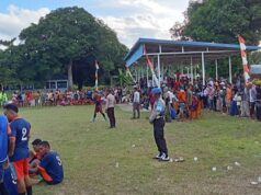Tribratanews.polrestanimbar.com – Polda Maluku, Kepolisian Resor Kepulauan Tanimbar, Guna menjamin keamanan, kelancaran dan kondusifitas selama pertandingan, Personel Polsek Wuarlabobar mengamankan jalannya turnamen Futsal.