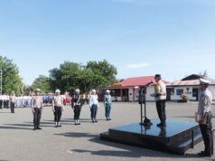 Pastikan kesiapan Personel Pam Pleno, Karendal Ops OMB Polres Kepulauan Tanimbar pimpin pelaksanaan Apel