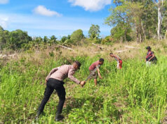 Dukung Ketahanan Pangan, Bhabinkamtibmas Wulmasa bersama Poktan gotong royong bersihkan lahan kebun