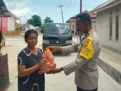 Peduli Warga kurang mampu, Bhabinkamtibmas Karatat berikan bantuan paket sembako