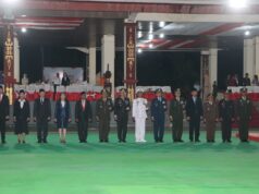 Berlangsung khidmat, Kapolres Kepulauan Tanimbar hadiri Penurunan Bendera Merah Putih saat peringatan hari Kemerdekaan...