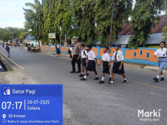 Sat Lantas Polres Kepulauan Tanimbar hadir berikan pelayanan terbaik lewat pengaturan di pagi hari