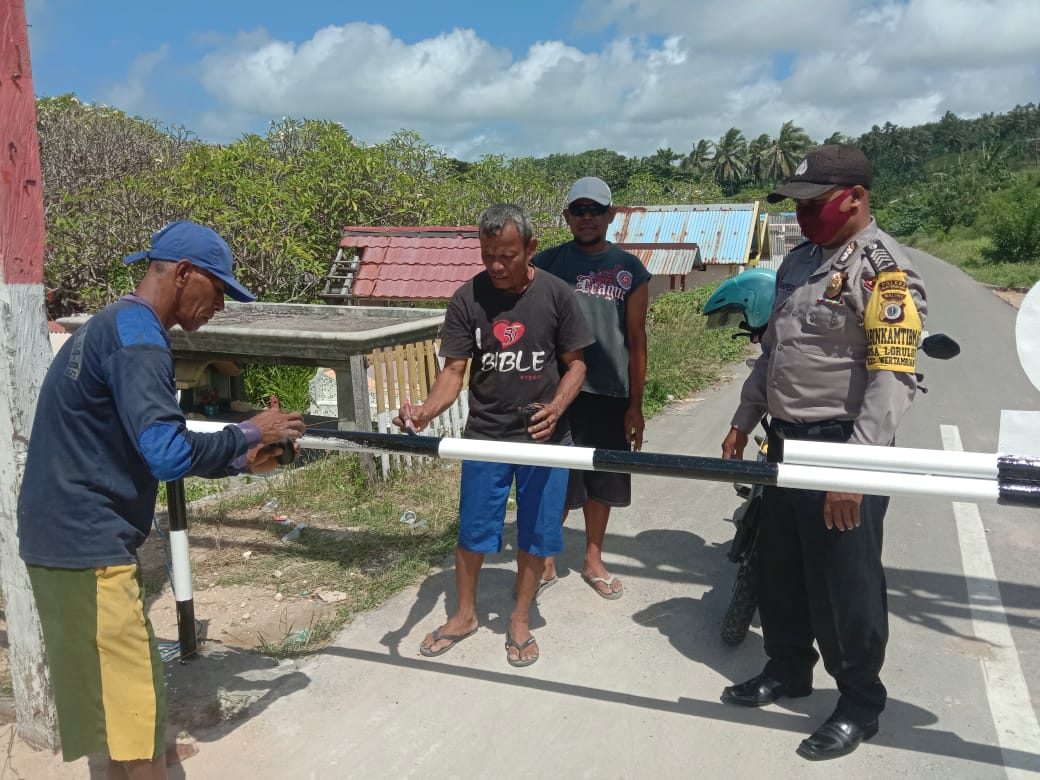 Pemasangan palang tersebut untuk mengantisipasi kendara roda dua dan roda empat agar tidak berlalu lalang pada saat jam ibadah berlangsung, Bhabinkamtibmas juga menyampaikan kepada wara agar tidak bergerombol,selalu jaga jarak serta menggunakan masker pada saat beraktifitas.