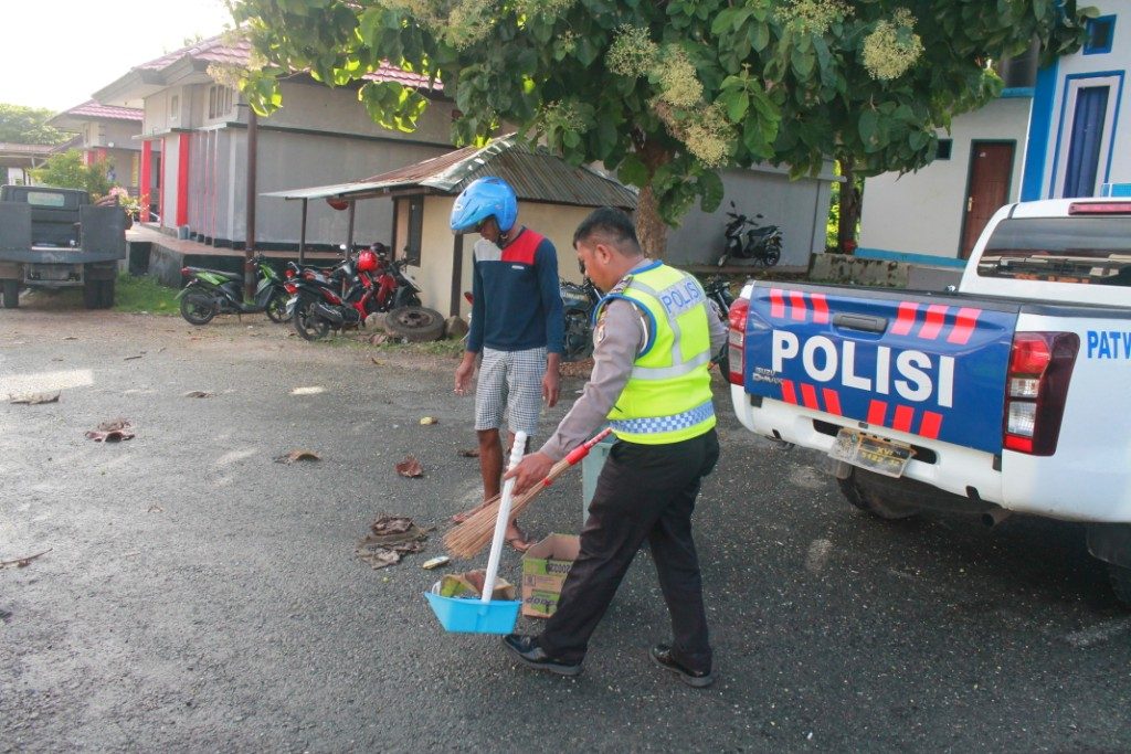 Menjaga kebersihan tempat kerja maupun areal tempat kerja merupakan tugas rutin yang sudah dilakukan personil Piket Sat Lantas Polres Maluku Tenggara Barat setiap harinya.
