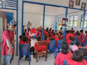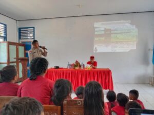 Guna mencegah kenakalan remaja dan dalam rangka menyiapkan generasi penerus bangsa sejak Usia Dini, Kanit Binmas Polsek Selaru Aipda A. A. Samponu bersama Bhabinkamtibmas Desa Lingat Briptu Y. Lilimwelat melakukan kegiatan Sosialisasi Kepada Anak-Anak Peserta Libur Ceria Jemaat GPM Desa Lingat, Kecamatan Selaru, Kabupaten Kepuluan Tanimbar, Rabu (28/06).