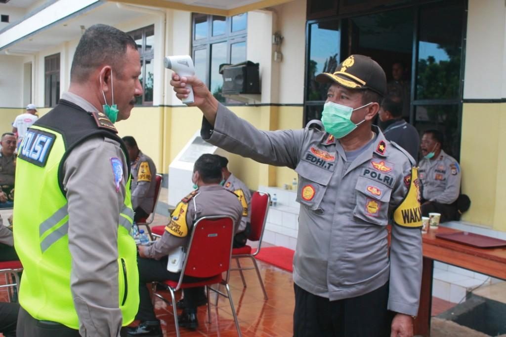 Cegah Penyebaran Wabah Covid-19, Polres MTB Cek Suhu Tubuh Seluruh Personil