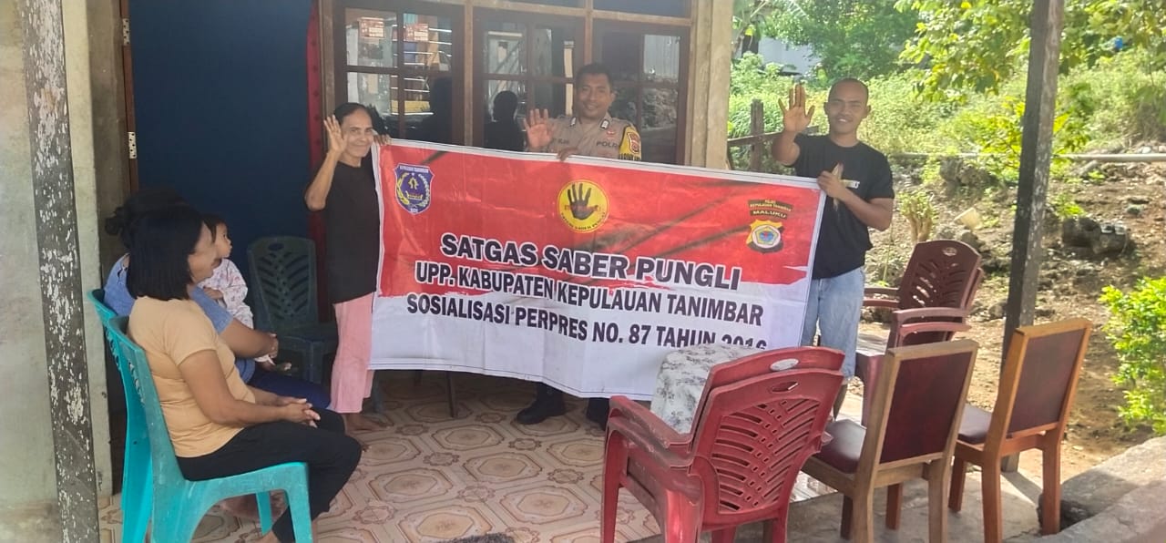 Tribratanews.polrestanimbar.com – Polda Maluku, Polres Kepulauan Tanimbar, sebagai upaya pencegahan Pungli, Bhabinkamtibmas Desa Olilit Raya 2 Bripka Angry Helaha Mensosialisasikan Perpres Nomor 87 tahun 2016 tentang Satgas Saber Pungli Kepada Beberapa masyarakat di Desa Olilit Raya 2, Kecamatan Tanimbar Selatan, Kabupaten Kepulauan Tanimbar, Sabtu (10/06).