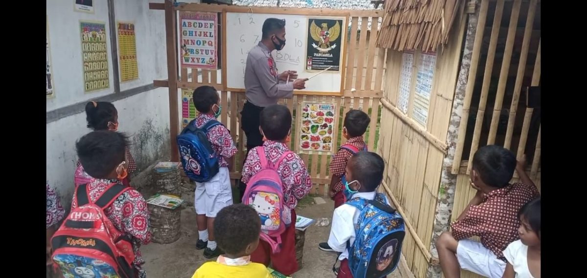 Bhabinkamtibmas mengambil waktu dan kesempatan untuk mengajak anak-anak SD kelas l ( satu ) yang baru pulang dari Sekolah untuk memberikan dorongan bagi mereka untuk ke Perpustakaan Bhabinkamtibmas guna menimba ilmu dalam proses belajar mengajar serta membaca guna mempersempit waktu bermain anak dan memberikan fokus anak untuk belajar, sehingga menciptakan anak-anak Indonesia pintar dan cerdas di dalam situasi Pandemi Covid-19, Tak lupa Bhabinkamtibmas mengajak memberikan himbauan Protokol Kesehatan Pencegahan Covid-19 yaitu Selalu memakai masker, Jaga jarak, serta rajin mencuci tangan.