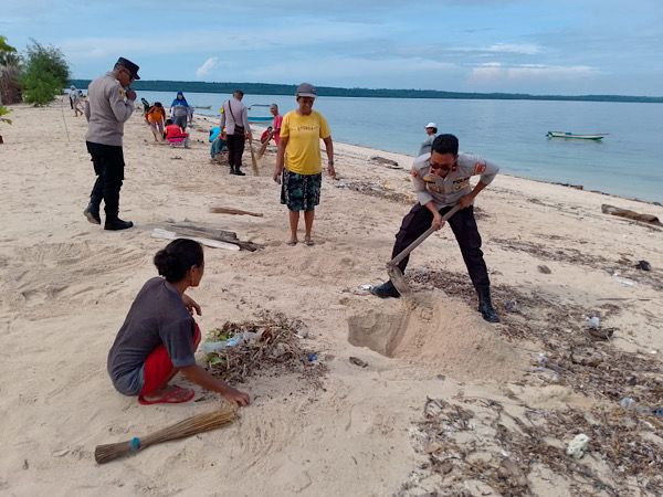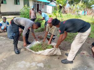 Tribratanews.polrestanimbar.com – Polda Maluku, Kepolisian Resor Kepulauan Tanimbar, Wujud kepedulian dan membina kedekatan dengan masyarakat sebagai bentuk Cooling System pasca pungut dan hitung suara pada Pemilu 2024, Polsek Fordata menggelar Karya Bakti bersih-bersih sampah.