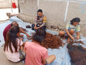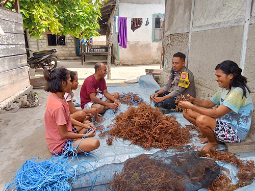 Tribratanews.polrestanimbar.com – Polda Maluku, Polres Kepulauan Tanimbar, bertempat di Desa Fursui Kecamatan Selaru, Kabupaten Kepulauan Tanimbar, Bhabinkamtibmas Desa Fursui Bripda R. Titirloloby Sambangi salah satu pelaku UMKM Bapak Pede Linansera yang sedang duduk mengikat rumput laut bersama warga lainya, Kamis (11/05).