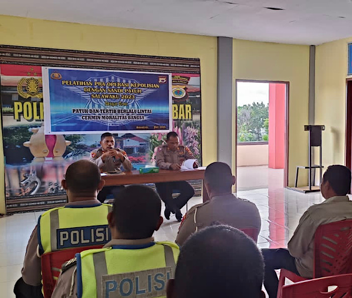 Tribratanews.polrestanimbar.com – Polda Maluku, Dalam rangka Cipta Kondisi Kamseltibcarlantas Pasca Pelaksanaan Hari Bhayangkara Tahun 2023, Polres Kepulauan Tanimbar menggelar kegiatan Pelatihan Pra Operasi Kepolisian dengan sandi Patuh Salawaku 2023, yang bertempat di gedung lantai 2 Mapolres Kepulauan Tanimbar, Kamis (06/07).