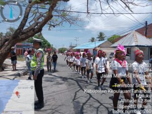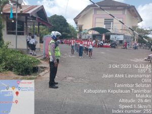 Tribratanews.polrestanimbar.com – Polda Maluku, Polres Kepulauan Tanimbar melalui Satuan Lalu Lintas melaksanakan Pengamanan dan Pengawalan berlangsungnya kegiatan lomba Gerak Jalan Kreasi dalam rangka memperingati HUT Kabupaten Kepulauan Tanimbar ke-24 tahun 2023, Selasa (03/10).