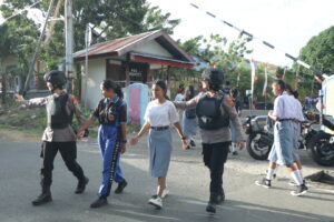 Dalam pelaksanaan tugas Patroli dialogis, ditemukan beberapa Anak Sekolah yang melakukan bolos Sekolah saat proses belajar mengajar berlangsung, sehingga dengan sigap para Srikandi Polwan Polres Kepulauan Tanimbar memberikan himbauan serta langsung mengembalikan para Siswa tersebut ke Sekolahnya masing-masing mengingat masih dalam jam Sekolah.