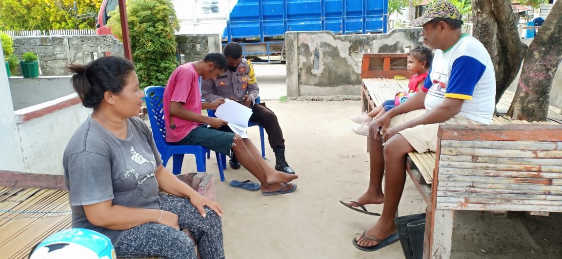 Bhabinkamtibmas Desa Lingat BRIGPOL Y. DJILARPOIN, Melakukan koordinasi dengan Pemdes Lingat guna mengambil data warga yang sudah dan yang belum mendapatkan Bansos.