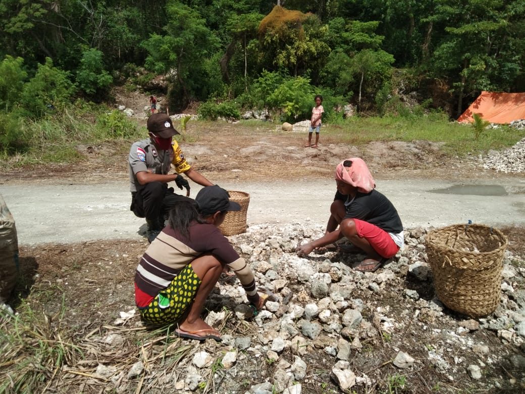 Adapun Bhabinkamtibmas memberi himbauan kepada Ibu-ibu yang Mengumpulkan Batu untuk selalu Menjaga Kebersihan diri, rajin mencuci tangan menggunakan Air mengalir serta Sabun/Antiseptik dan Selalu Menggunakan Masker Wajah.