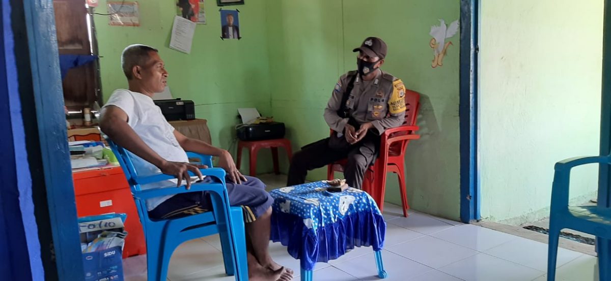 Tribratanews.polrestanimbar.com – Polda Maluku, Polres Maluku Tenggara Barat, Kamis 08 Oktober 2020, pukul 16.00 wit, bertempat di Desa Batuputih, Kecamatan Wermaktian, Kabupaten Kepulauan Tanimbar Bhabinkamtibmas Desa Batuputih Bripka P. Titirloloby melaksanakan giat door to door (DDS) berupa kunjungan kepada Bapak A. Somarwane.