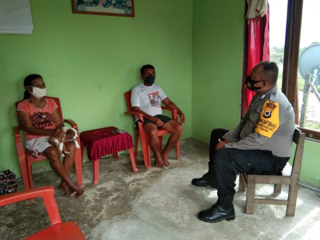 Tribratanews.polrestanimbar.com – Polda Maluku, Polres Maluku Tenggara Barat, Rabu 16 September 2020, pukul 15.20 wit, bertempat di Desa persiapan Ilngei Barat Kecamatan Tanimbar Selatan, Kabupaten Kepulauan Tanimbar Bhabinkamtibmas Desa persiapan Ilngei Barat Bripka N. Kundre melaksanakan kegiatan Door to Door System (DDS) kerumah Bapak Danus Itrandulan.