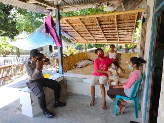 Tribratanews.polrestanimbar.com – Polda Maluku, Polres Maluku Tenggara Barat, Senin 12 Oktober 2020, pukul 09.00 wit, bertempat di Desa Wowonda, Kecamatan Tanimbar Selatan Kabupaten Kepulauan Tanimbar Bhabinkamtibmas Desa Wowonda Bripka Simon Nusmese, S.H. melaksanakan giat Door to Door System (DDS) dalam bentuk kunjungan, Bhabinkamtibmas mengunjungi Warga atas nama Keluarga Dionisius Londar.