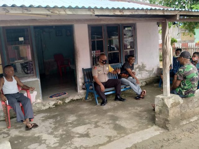 Tribratanews.polrestanimbar.com – Polda Maluku, Polres Maluku Tenggara Barat, Senin 31 Agustus 2020, pukul 13.21 wit, bertempat di RT.03 tepatnya dirumah Bapak Heri Fasak Desa Bomaki Kecamatan Tanimbar Selatan Kabupaten Kepulauan Tanimbar Bhabinkamtibmas Desa Bomaki Bripka S. E. S. Mitakda melaksanakan Door to Door Sistem (DDS) kepada warga RT.03 Desa Bomaki yang berada didepan rumah saudara Heri Fasak yang mana mereka lagi duduk berkelompok.