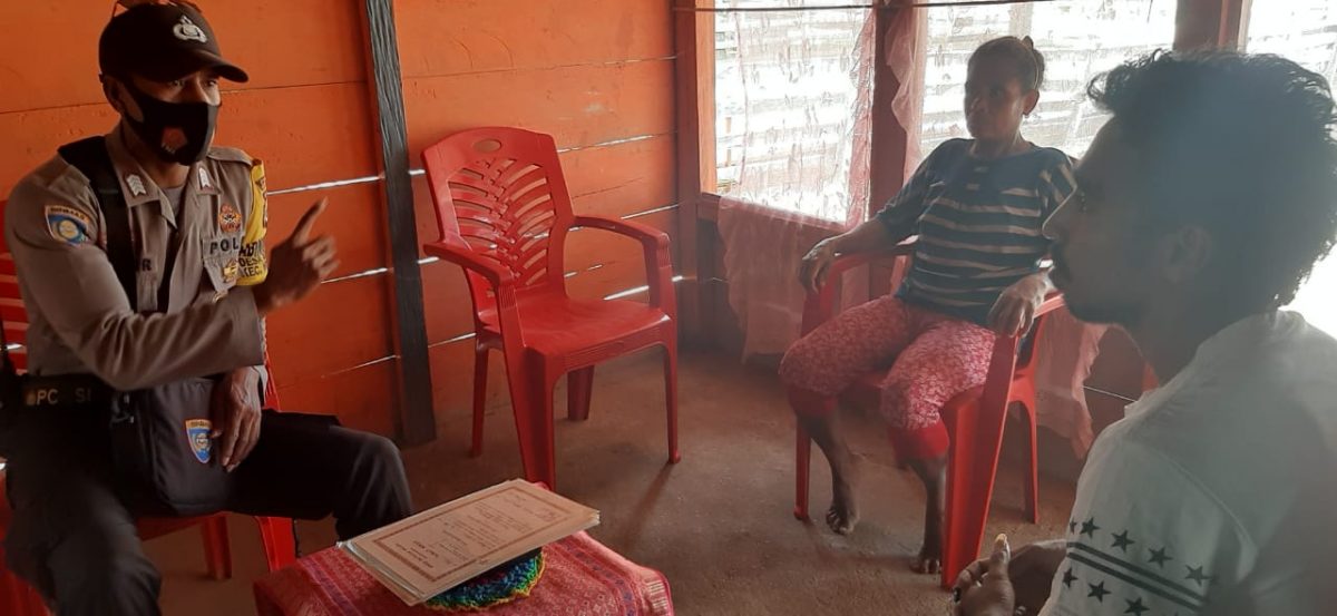 Tribratanews.polrestanimbar.com – Polda Maluku, Polres Maluku Tenggara Barat, Jumat 25 September 2020, pukul 10.30 wit, bertempat di Desa Batuputih, Kecamatan Wermaktian, Kabupaten Kepulauan Tanimbar Bhabinkamtibmas Desa Batuputih Bripka P. Titirloloby melaksanakan giat Door to Door kepada keluarga Bapak Elia Rangkoratat.