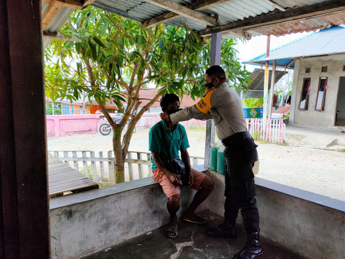 Dikesempatan itu Bhabinkamtibmas juga membagikan masker kepada warga yang dikunjungi karena warga mengeluh belum sempat membeli masker di kota.