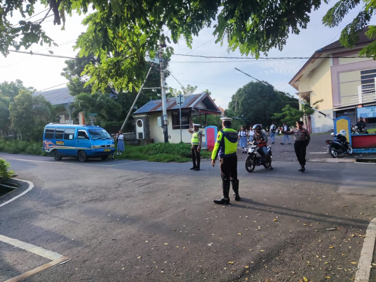 Pengaturan Arus Lalu Lintas oleh Sat Lantas bersama Sat Samapta Polres Kepulauan Tanimbar dipimpin oleh KBO Sat Samapta Ipda Salmon Matrutty.