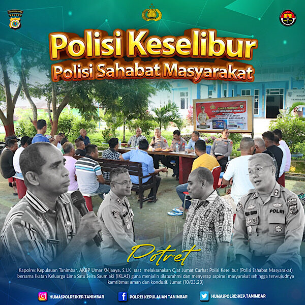 Tribratanews.polrestanimbar.com – Polda Maluku, Polres Kepulauan Tanimbar, Wujudkan Polisi Keselibur (Polisi Sahabat Masyarakat), Polres Kepulauan Tanimbar melaksanakan Jumat Curhat bersama Ikatan Keluarga Lima Satu Seira Saumlaki (IKLAS) yang hadir berjumlah sekitar 25 orang, bertempat di Depan Kantor Camat Tanimbar Selatan, Kabupaten Kepulauan Tanimbar, Jumat (10/03).
