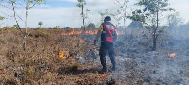 “Penyebab terjadinya Karhutla ini Kemungkinan disebabkan karena adanya daun alang-alang yang sudah mengering dan saling bergesekan, karena tiupan angin sehingga menimbulkan titik api” ujar Kapolsek.