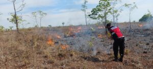 Dengan sigap dan respon cepat, Polsek Wermaktian berhasil memadamkan kebakaran Lahan