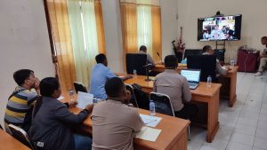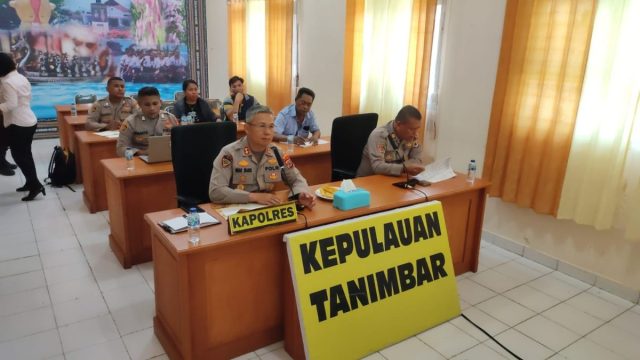 Tribratanews.polrestanimbar.com – Polda Maluku, Polres Kepulauan Tanimbar, diruang Rapat, Kapolres Tanimbar AKBP Umar Wijaya, S.I.K., didampingi Kabag Logistik dan anggotanya, menghadiri kegiatan Zoom Meeting Rapat Anev Belanja Modal oleh Biro Logistik Polda Maluku bersama Polres jajaran.