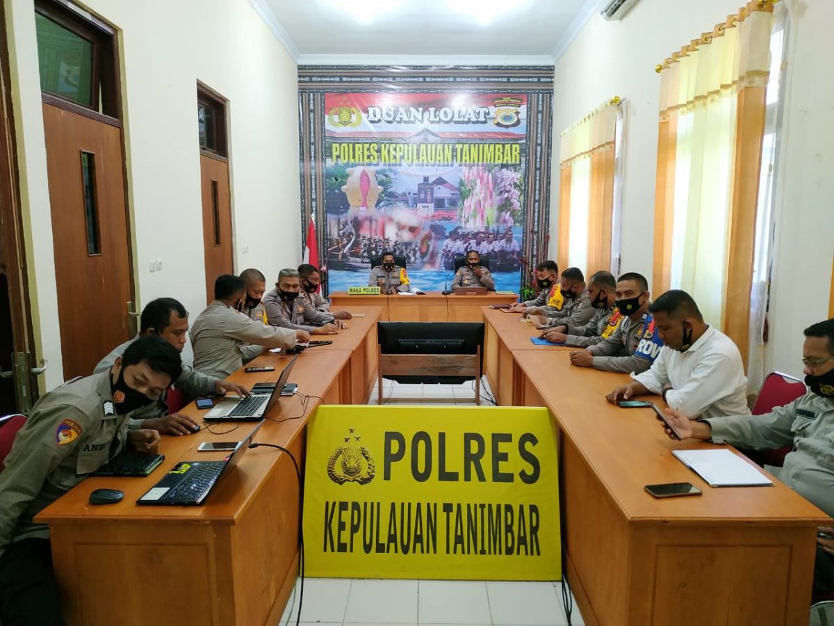 Tribratanews.polrestanimbar.com – Polda Maluku, Polres Kepulauan Tanimbar, Senin tanggal 10 Mei 2021 pukul 09.00 wit, bertempat di ruangan Vicon, Waka Polres Kepulauan Tanimbar Kompol Hendra Y. P. Haurissa, S.H., didampingi Kabag Ren Kompol M. Uwaubun, pimpin kegiatan rapat Anev pembahasan pengisian data serta dokumen pendukung pada aplikasi pembangunan zona integritas (ZI) Polres Kepulauan Tanimbar.