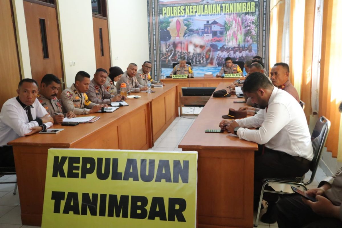 Tribratanews.polrestanimbar.com – Polda Maluku, Polres Kepulauan Tanimbar, Kapolres AKBP Umar Wijaya, S.I.K., didampingi Wakapolres Kompol Hendrik A. Rumsory, S.Sos., Pimpin kegiatan Rapat Analisa dan Evaluasi (Anev) Mingguan tingkat Polres, Senin (10/10).