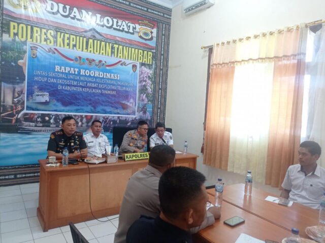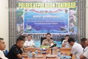 Tribratanews.polrestanimbar.com – Polda Maluku, Kepolisian Resor Kepulauan Tanimbar, Dalam rangka menjaga menjaga kelestarian lingkungan hidup dan ekosistem laut akibat eksploitasi telur ikan, Polres Kepulauan Tanimbar menggelar Rapat Koordinasi (Rakor) Lintas Sektoral.