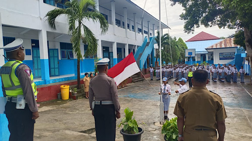 Dipimpin Kasat Lantas, Unit Dikyasa Sat Lantas Polres Kepulauan Tanimbar gelar Upacara Bendera di SMA Kristen