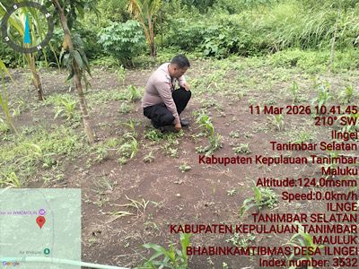 Tribratanews.polrestanimbar.com – Polda Maluku, Kepolisian Resor Kepulauan Tanimbar, Sebagai wujud nyata dukungan Polri terhadap program Pemerintah dalam memperkuat Ketahanan Pangan Nasional, Bhabinkamtibmas Desa Ilngei, Bripka BADIR lakukan pendampingan intensif sekaligus membantu Petani dalam perawatan tanaman jagung hibrida di Desa Ilngei, Rabu (11/03/26).