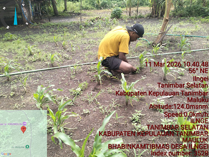 Kegiatan ini berlangsung di lahan milik Bapak WILIBRODUS RATUANAK yang berlokasi di kawasan Sumber Air Wmomolin, Desa Ilngei, Kecamatan Tanimbar Selatan. Di atas lahan seluas 40×50 meter tersebut, Bripka BADIR bersama pemilik lahan melakukan pemeliharaan tanaman jagung hibrida yang telah ditanam sejak 12 Februari 2026 lalu.