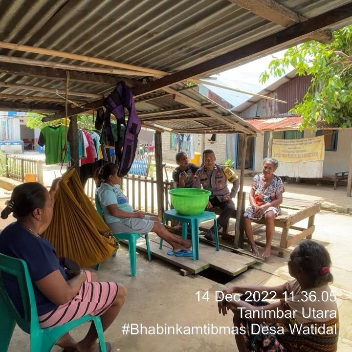 Tribratanews.polrestanimbar.com – Polda Maluku, Polres Kepulauan Tanimbar, Melakukan kunjungan kepada warga Binaan (Warga RT 004) yang sementara duduk di samping rumah keluarga Bpk Marthen Kewilaa, Bhabinkamtibmas Desa Watidal Polsek Tanut Aipda M. Serhalawan memberikan pesan, edukasi serta sosialisasi, rabu (14/12).